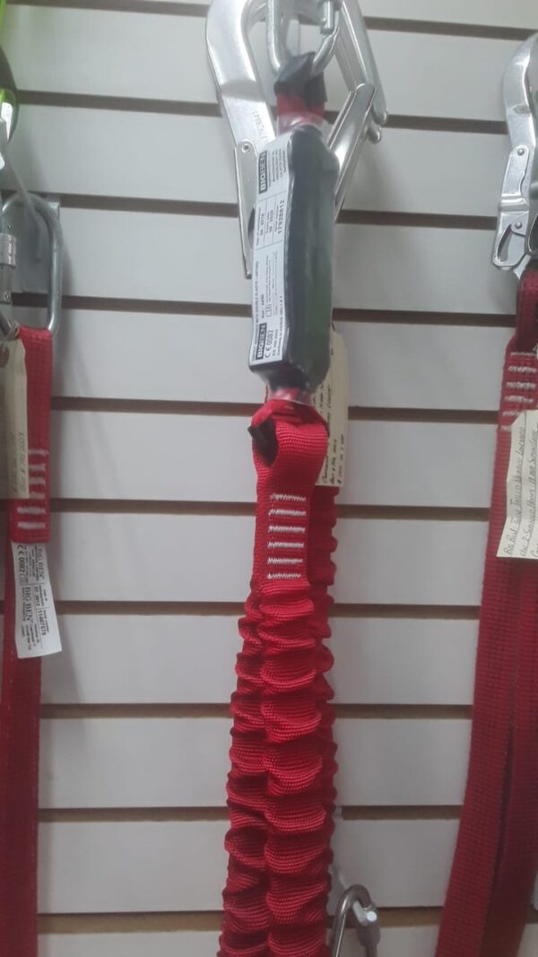 The Big Ben Twin-Tailed Elasticated Lanyard is designed for reliable fall protection in scaffolding and industrial applications. Featuring two scaffold hooks, a 17mm screw-gate carabiner, and an integrated energy absorber, it provides secure attachment and shock absorption. With a 2.0-meter length, it supports users weighing up to 100 kg.