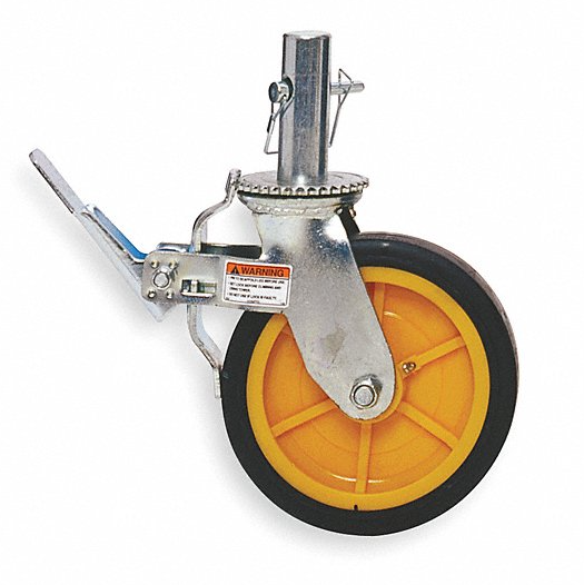 The caster, is one of three base options for scaffold. Attached to the bottom of the scaffold frame, casters are used to make units mobile for ease of job completion.