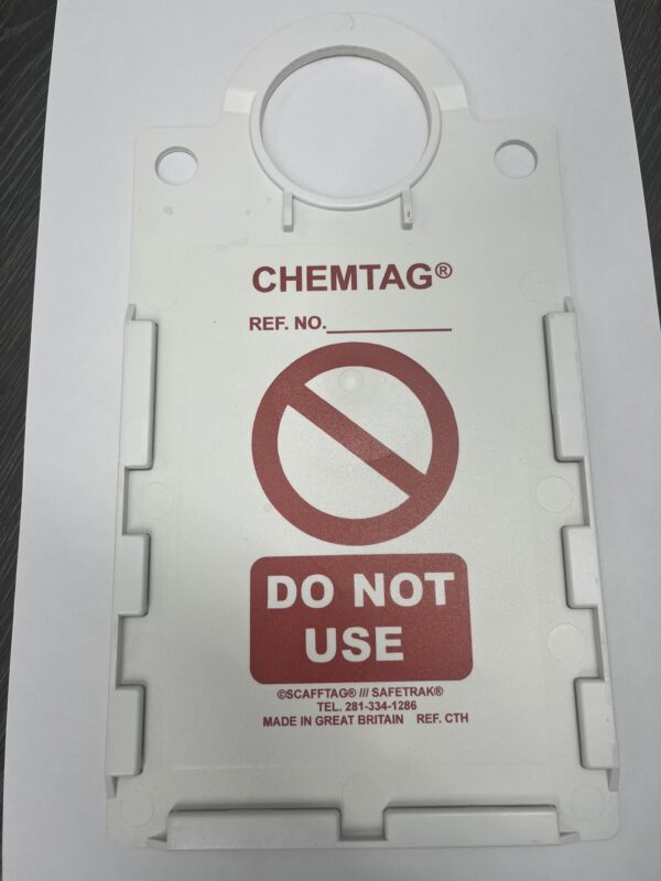 ChemTag Holder, designed for use with chemical hazard tagging systems. Keeps chemical hazard tags securely in place for clear identification and improved safety in workplaces handling hazardous substances.