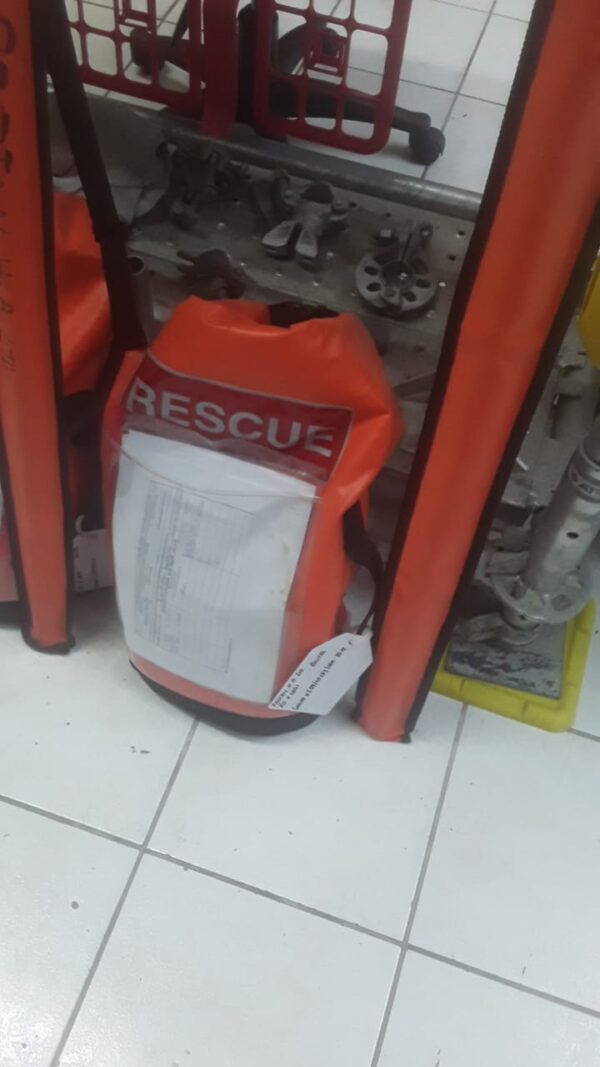 Complete rescue kit with pole, descending device, pulley, carabiner, and carry bag