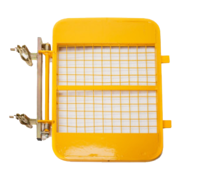 Comes with two strong springs which close the gate after use, automatically securing the ladder opening. Compatible with tube and fitting scaffolding or one of the systems, such as KStage, Cuplok or Layher etc. To increase safety, the gate is fully enclosed with extra strong mesh and also includes a pressed steel toe board welded to the frame.
